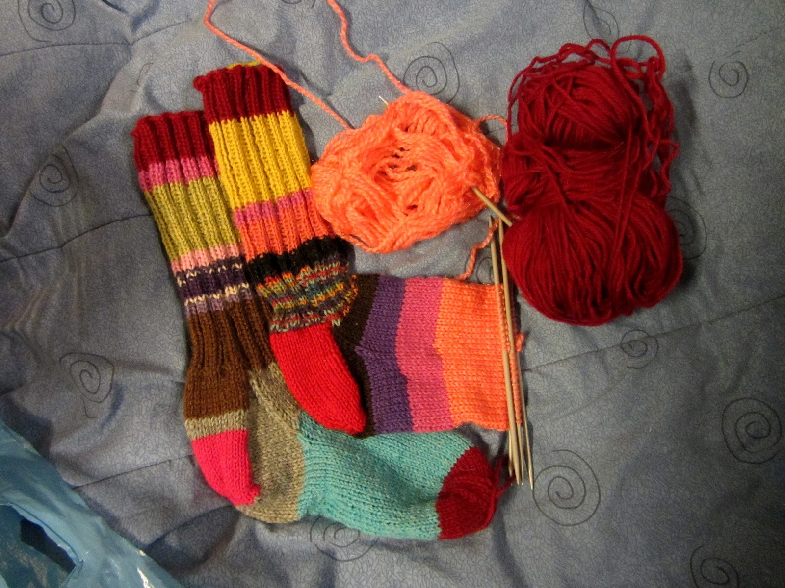 Vein tuossa äsken yhdet sukat postiin....jotka lähti vanhimmalle pojalleni. Ja "viittä vaille" on omat sukat valmiit...tein ne jämä langoista.